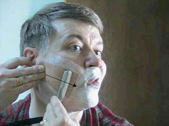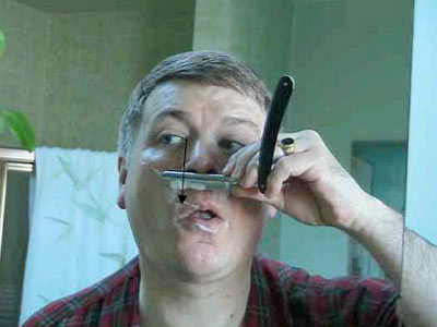 Приведем выдержки из "Искусства бритья опасной бритвой" К.Мосса, где он описывает приемы бритья опасной бритвой: